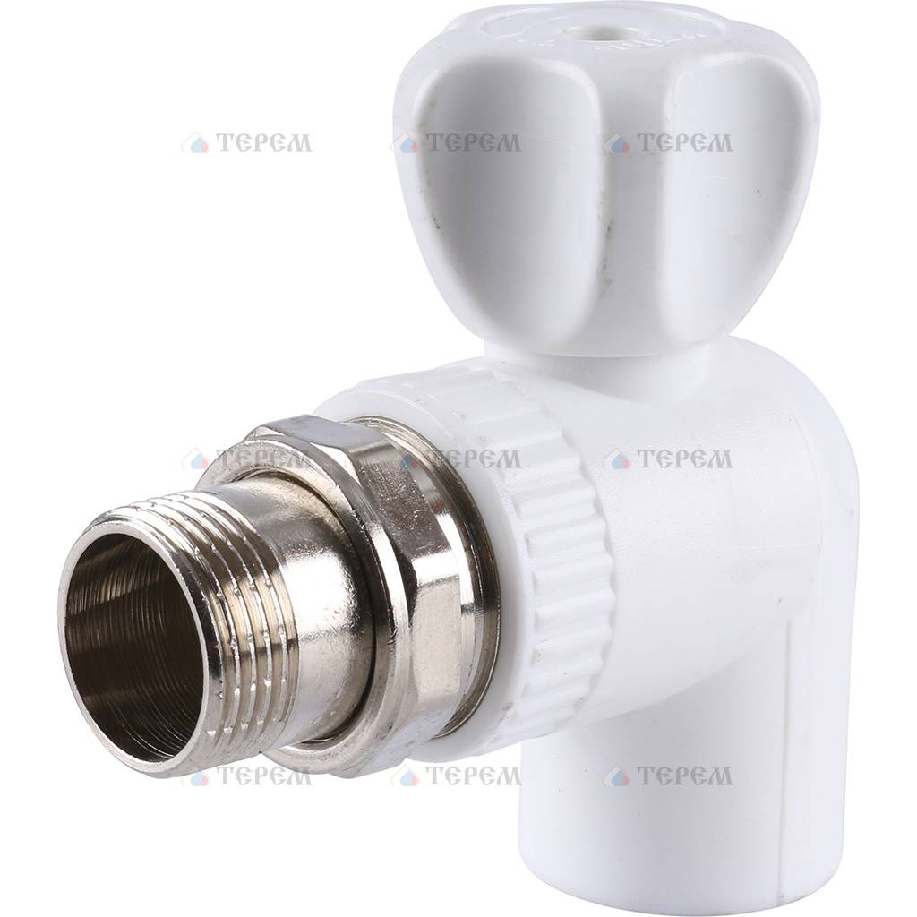 Политэк 25х3/4" Кран шаровой для радиатора угловой для полипропиленовых труб под сварку (цвет белый)