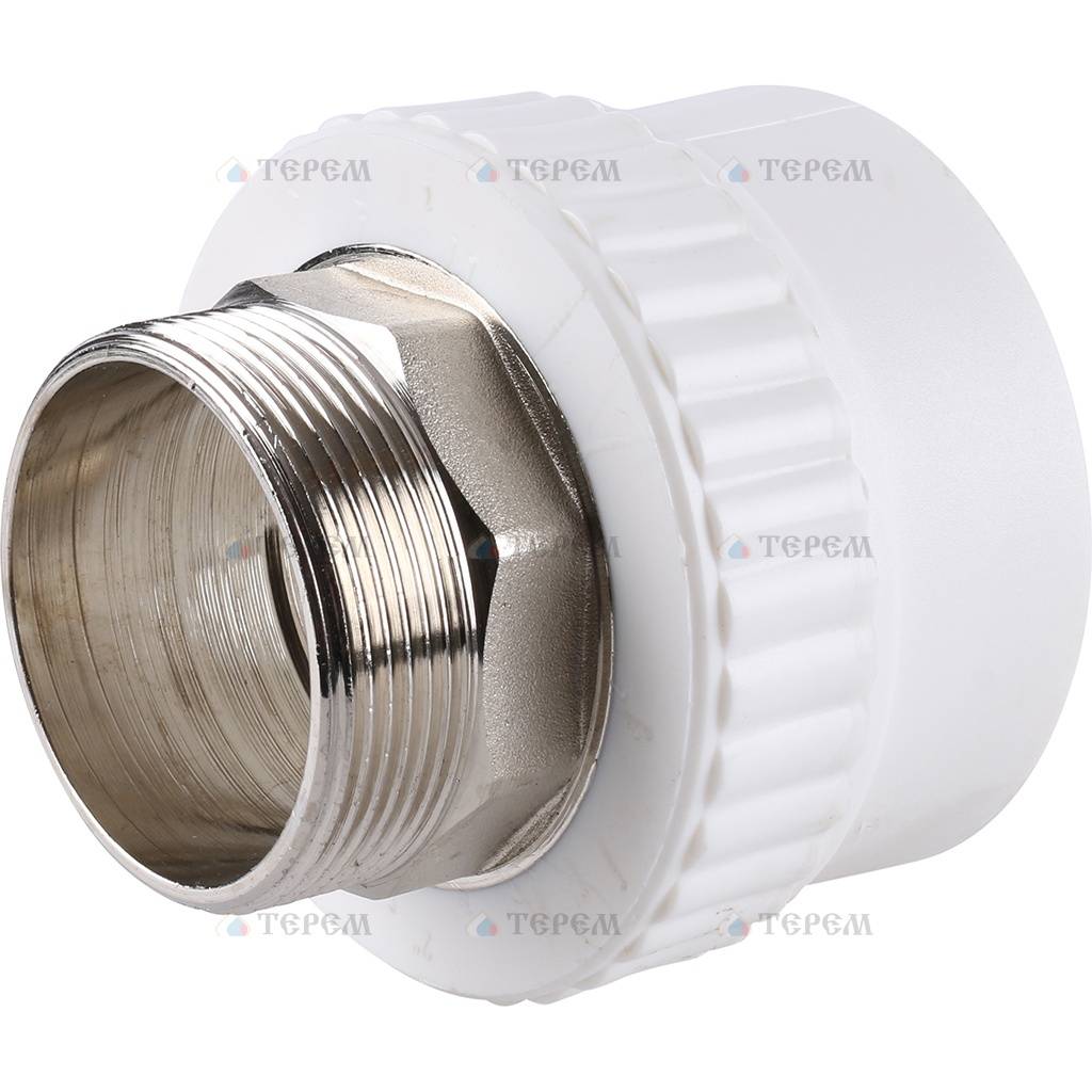 Политэк 63x2" Муфта комбинированная под шестигранник наруж. резьба для полипропиленовых труб под сварку (цвет белый)