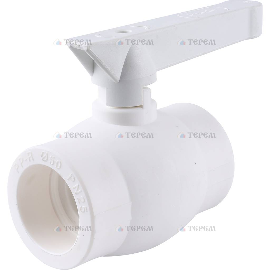 Kalde d=50 Кран шаровой для полипропиленовых труб под сварку (цвет белый)