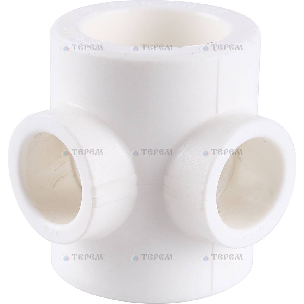 Переходные крестовины из полипропилена используются для монтажа нескольких отрезков трубы в единую систему. Соединение фитинга с трубой производится с помощью термообработки паяльником.